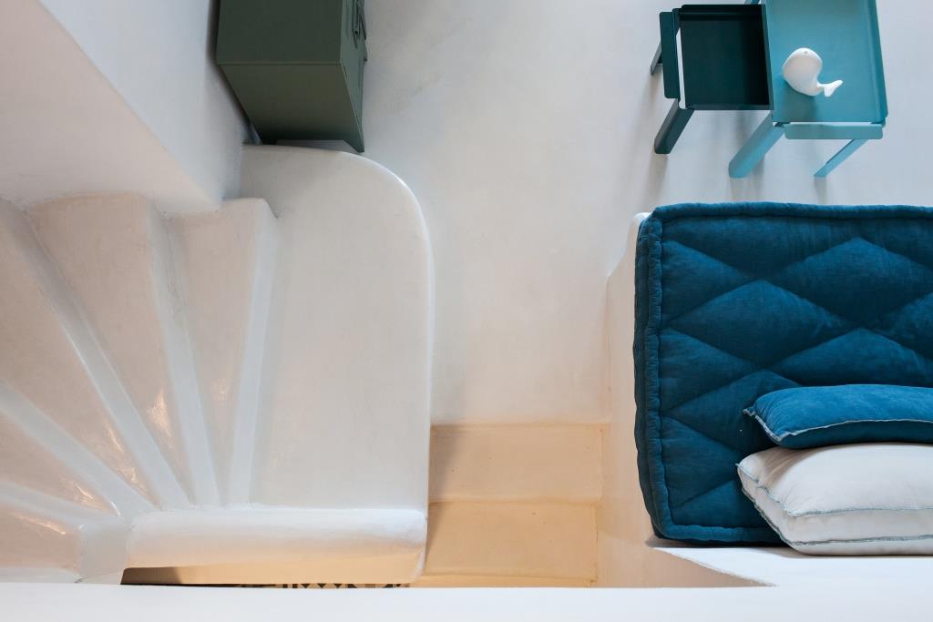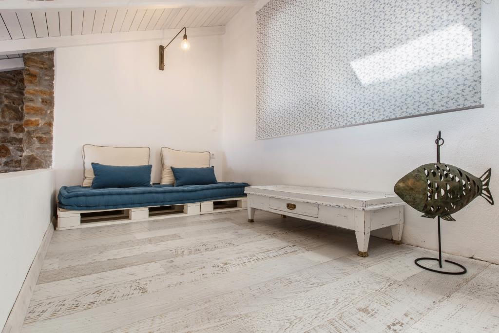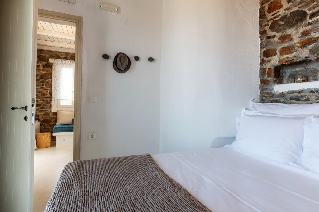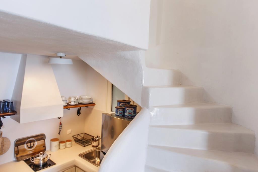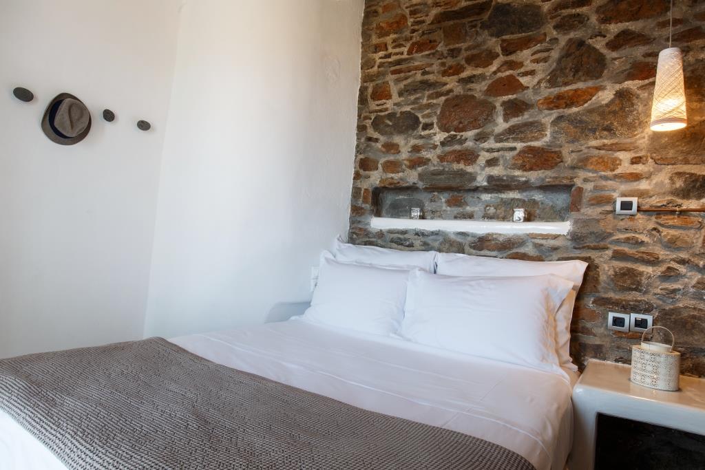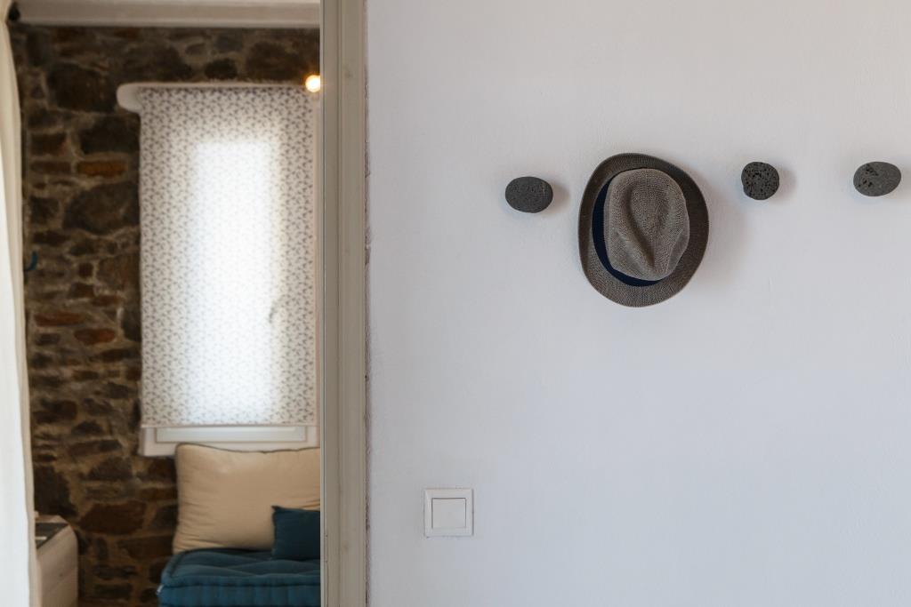 Sur la terrasse privée et meublée de la résidence, vous trouverez des chaises longues et une table pour profiter de la vue extraordinaire sur la mer Égée sous le soleil ou sous les mille étoiles de la nuit.