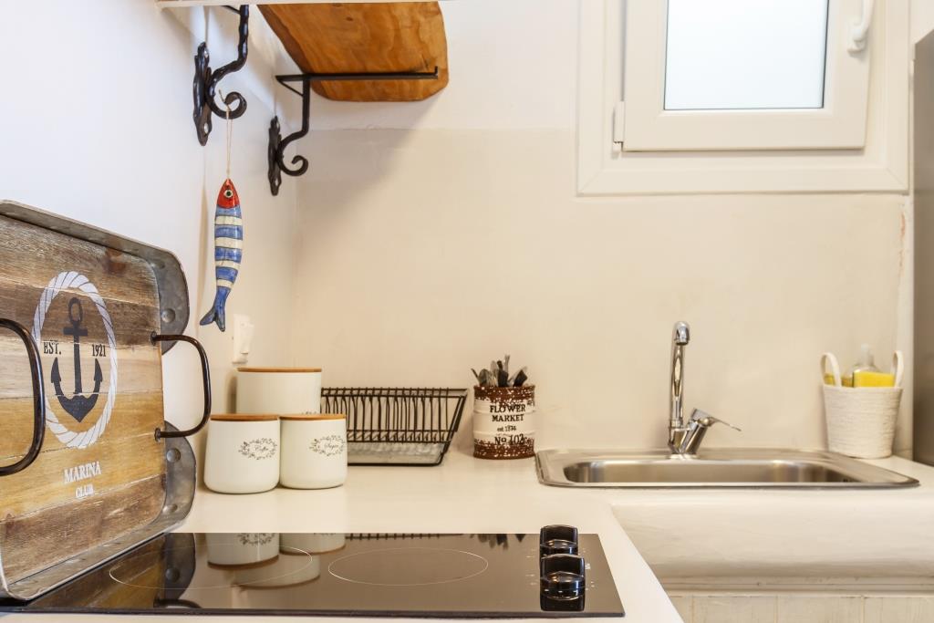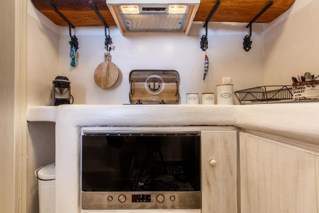 La cuisine de la résidence est entièrement équipée avec couverts, assiettes, verres, tasses, tasses de thé et café et avec tous les appareils nécessaires tels que réfrigérateur, cuisinière électrique et machine à café Espresso.