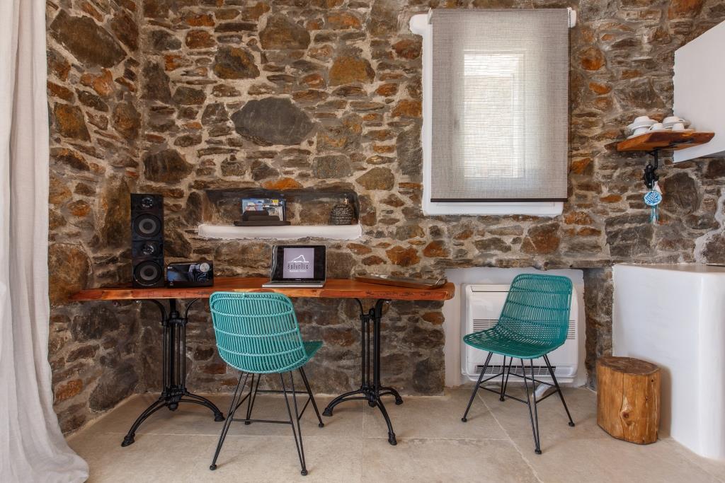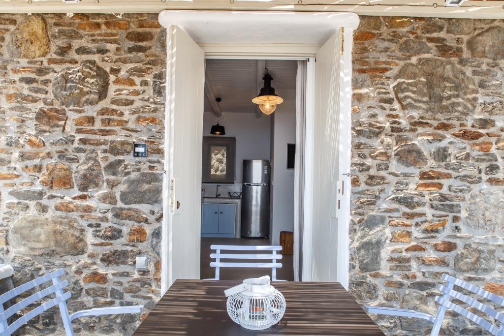 Η κατοικία διαθέτει δική της βεράντα με σεζ λογνκ και τραπέζι για την απόλαυση της απίστευτης θέας του Αιγαίου Πελάγους τις ώρες με ήλιο και των χιλιάδων αστεριών τις νύχτες.