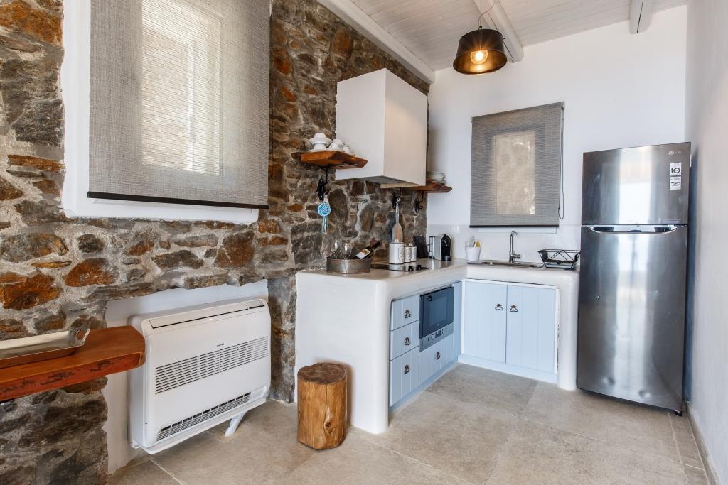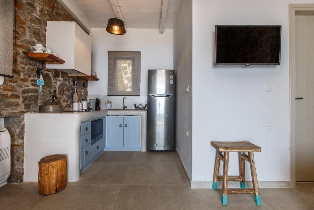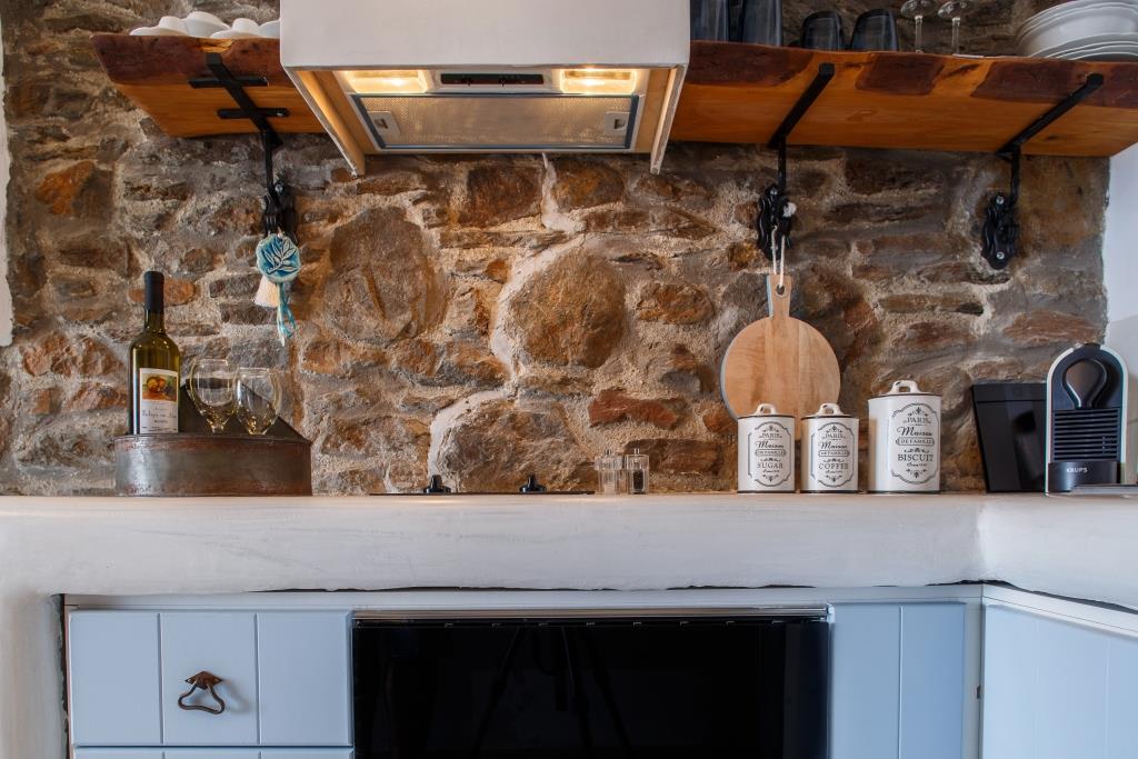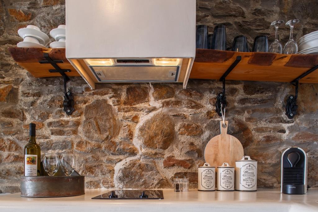 Η κουζίνα της κατοικίας διαθέτει όλα τα σκεύη οικιακού εξοπλισμού πιάτα, ποτήρια, μαχαιροπίρουνα, κούπες για τσάι, κούπες για καφέ και φλυτζάνια για espresso καθώς και όλες τις απαραίτητες για τον επισκέπτη ηλεκτρικές συσκευές, ψυγείο, κουζίνα, εστίες καθώς και καφετιέρα για Espresso.