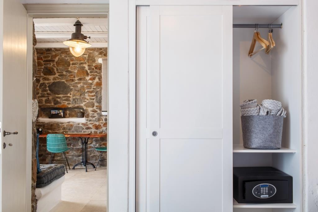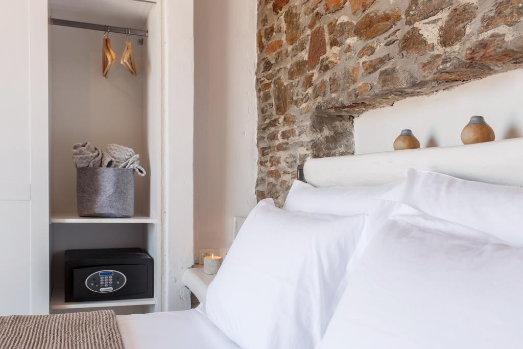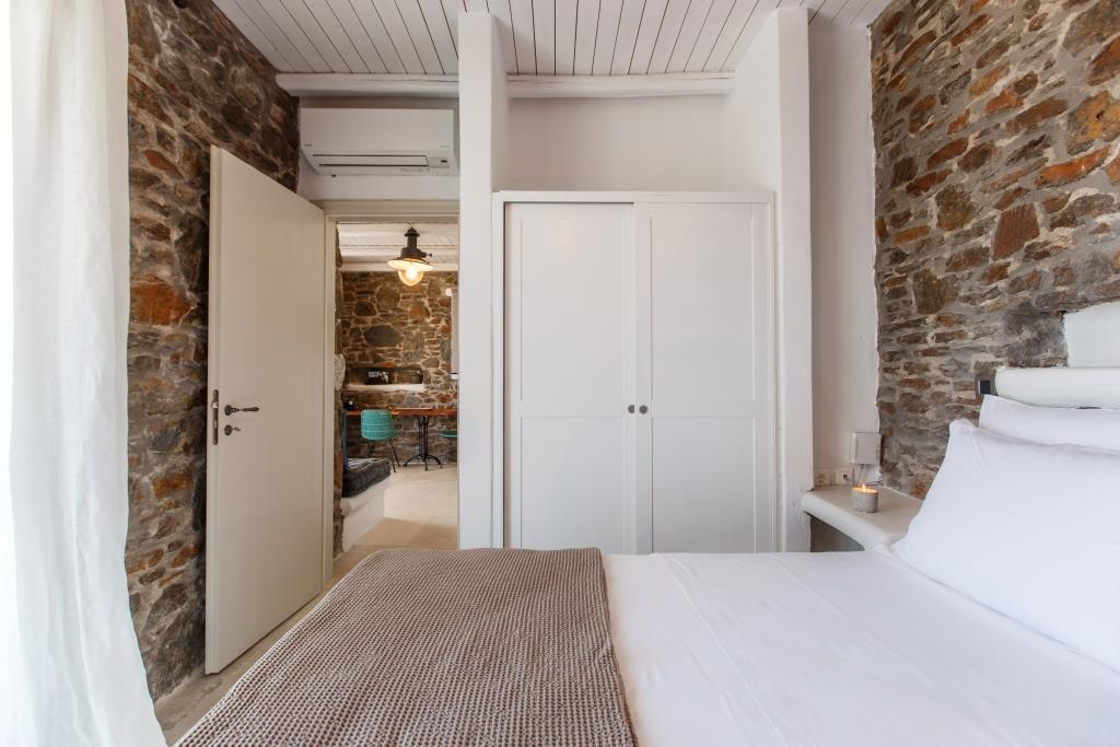 Στο υπνοδωμάτιο απαντάται διπλό χτιστό κρεβάτι με το διασημότερο πολυτελές άνετο στρώμα της κορυφαίας εταιρείας Beautyrest® by Simmons, επιλεγμένο ειδικά για τους φιλοξενούμενους τους συγκροτήματος μας, ντουλάπα και χρηματοκιβώτιο για την φύλαξη προσωπικών αντικειμένων.